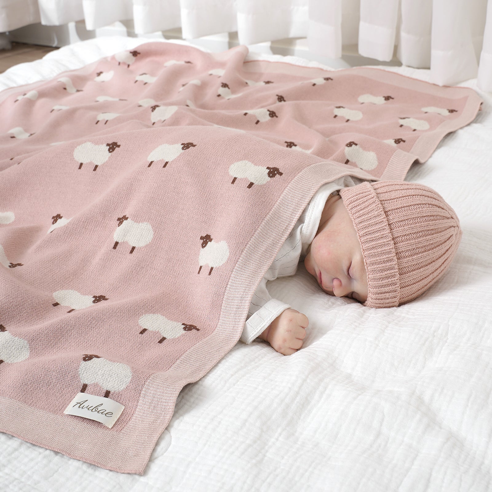 Avibae 100% Cotton Lamb Pattern Baby Comfort Blanket